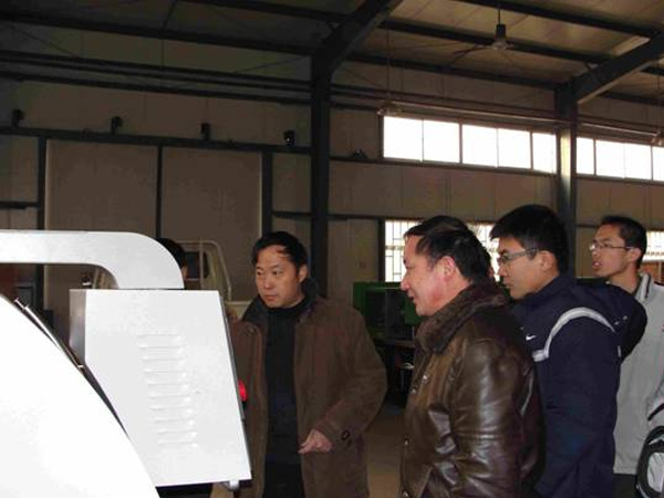 蘇總(左二)為姜教授(左三)以及師生介紹我公司產(chǎn)品(CK6150A*1000)