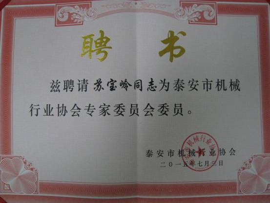 蘇總被聘為市機械行業(yè)協(xié)會專家委員會委員